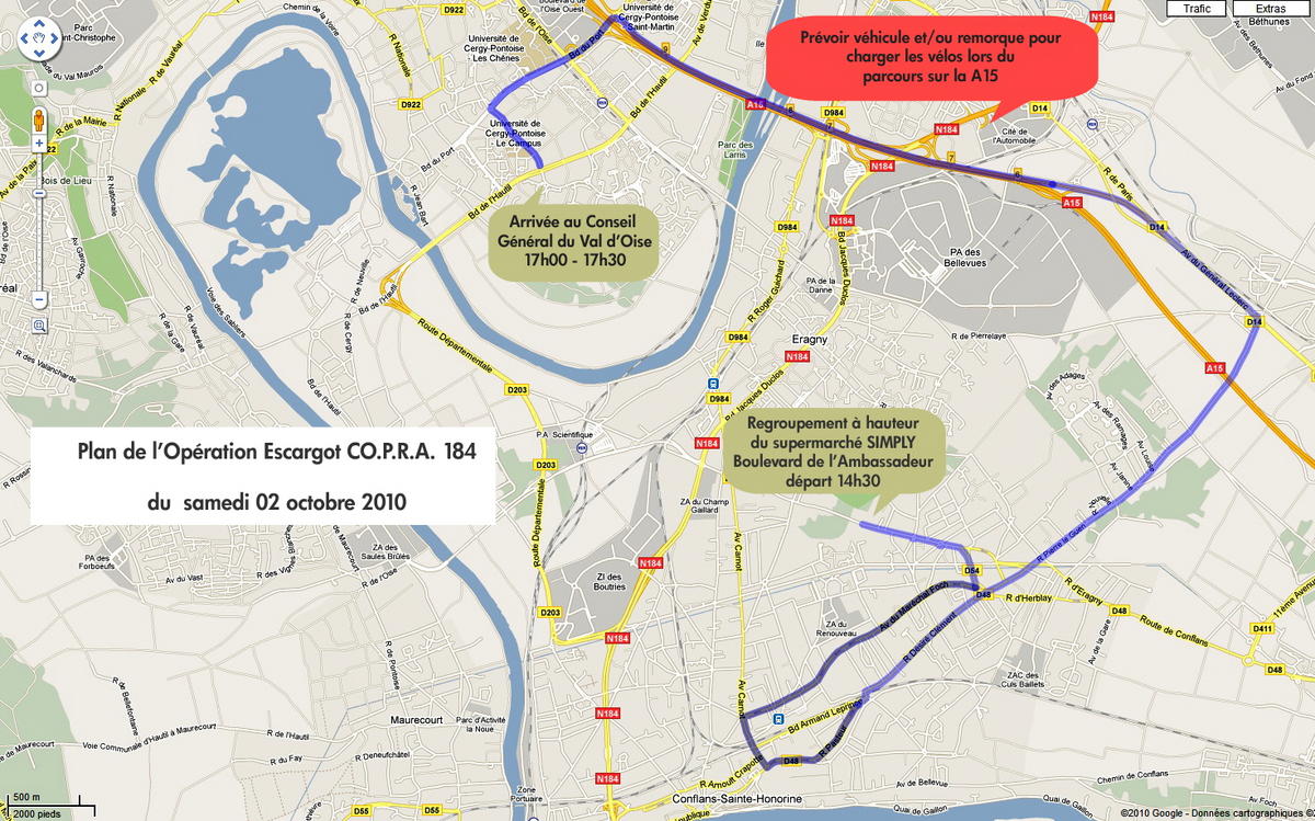 Plan de l'opération escargot COPRA 184 du 2 octobre 2010