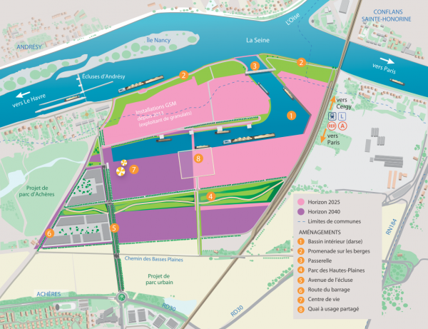 ♦  La position centrale du confluent à la jonction du futur canal Seine-Nord et de l'autoroute fluviale envisagée Paris-Rouen-Le Havre.