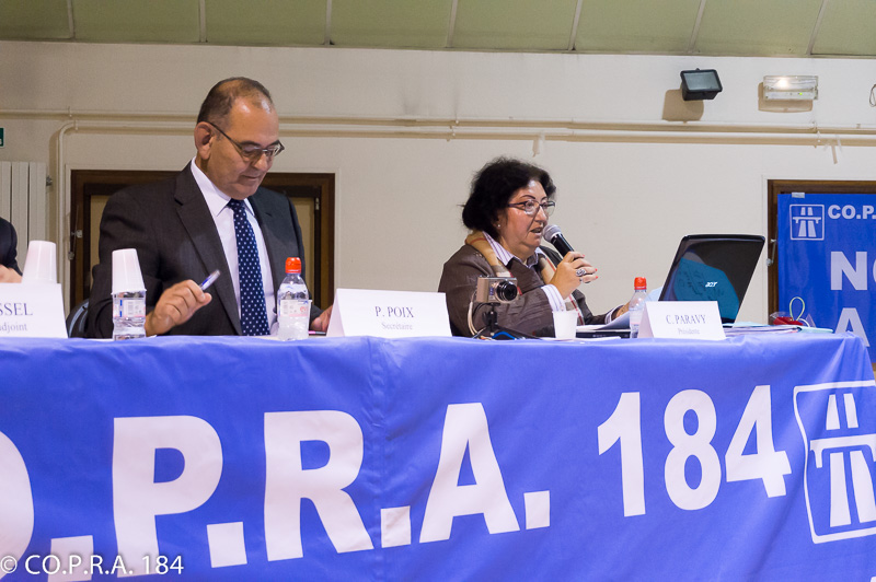 Lecture est faite du Rapport Moral par Christiane PARAVY, Présidente du CO.P.R.A. 184.