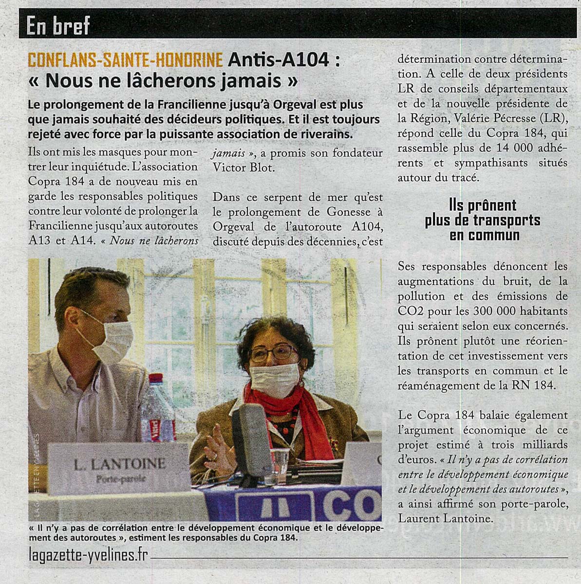 Mandaté par ses adhérents, le CO.P.R.A. 184 oeuvre pour la protection de plus de 300 000 habitants du Val d'Oise et des Yvelines, victimes potentielles du Tracé Vert A104.