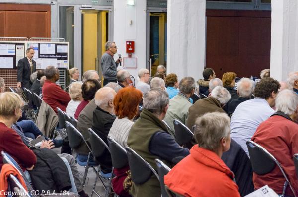 Les échanges du CO.P.R.A. 184 avec le public et les Élus présents à l'AGO sont riches. Ils témoignent de la détermination intacte des adhérents et sympathisants à ne pas accepter le "tracé vert" A104 ou tout autre tracé en zones urbanisées.