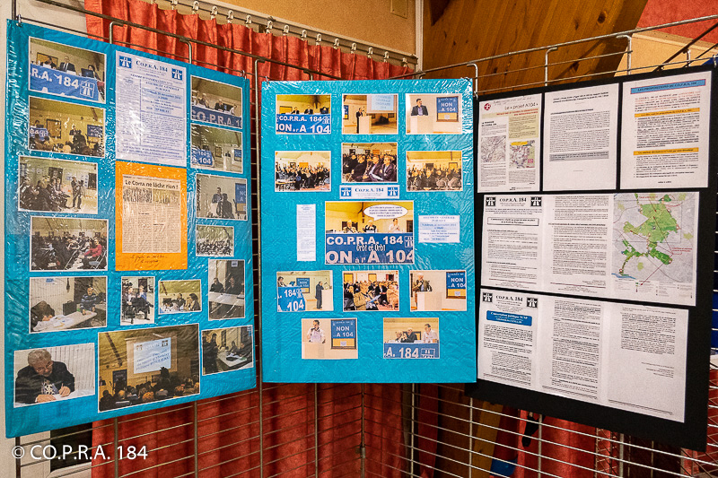 Des panneaux d'informations diverses relatives à l'action et à l'historique du CO.P.R.A.184, sont exposés sur les côtés de l'Espace Gérard Blondeau.