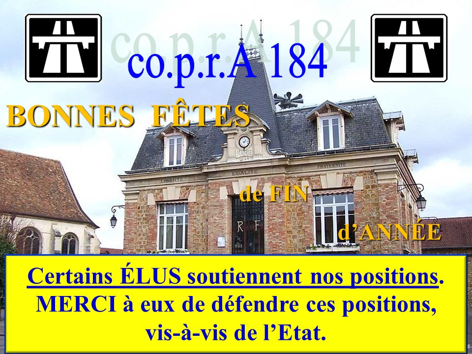 • Aux Élus venus soutenir le CO.P.R.A. 184. Christiane PARAVY cite le nom des Élus présents mais aussi celui des Élus, qui lui ont fait part de leur impossibilité d'assister à cette AGO en la priant de bien vouloir les excuser.