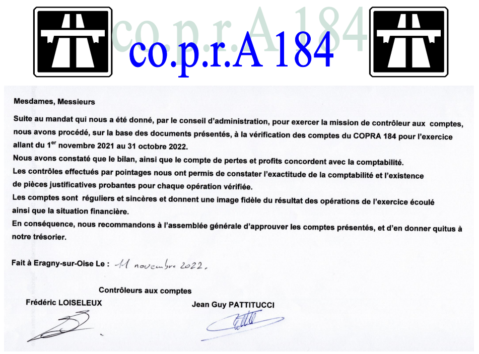 Le 25 novembre 2022 à 20h, les adhérents du CO.P.R.A. 184 se sont réunis en Assemblée Générale Ordinaire à l’Espace Louis Armand de Carrières-sous-Poissy, sur convocation de la Présidente du CO.P.R.A. 184, dûment adressée aux adhérents dans les formes et délais prévus et en application de l’article 10 des statuts de l’association.
