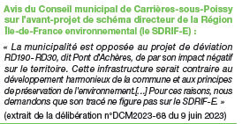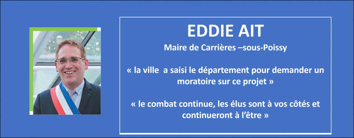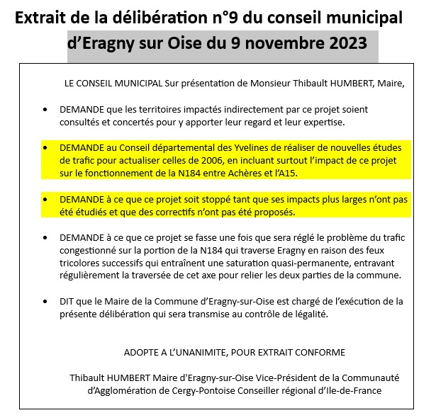 Des élus, de tous bords, des Yvelines et du Val d'Oise, demandent l'arrêt de ce projet basé sur des études de trafic anciennes (2006), n'ayant pas fait l'objet de consultations préalables sur le Val d'Oise qu'il impacte pourtant fortement et ne prenant pas en compte les engagements environnementaux pris par les autorités, depuis sa décision, en 2012.
