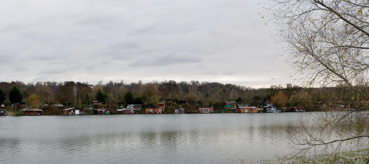 Cet endroit idyllique serait totalement impacté par le passage de l'A104 puique les 2 viaducs prévus à cet endroit, à 15 ou 20m de hauteur, pour relier l'île de Migneaux à Carrières, passeraient au-dessus de ces maisons flottantes.