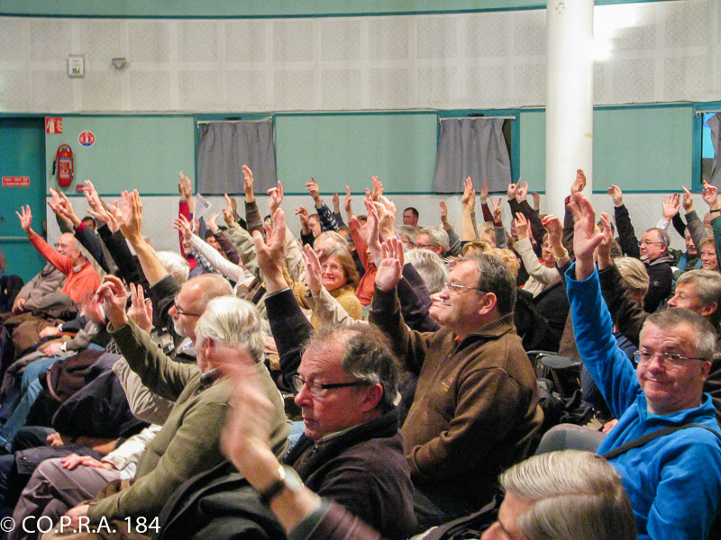 Le vendredi 22 novembre 2013, les adhérents du CO.P.R.A. 184 se réunissent en Assemblée Générale Extraordinaire à la Salle Boris Vian d'Achères, aimablement mise à disposition du CO.P.R.A. 184 par la municipalité d'Achères.