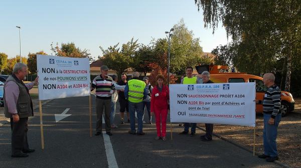 Bien que l’objectif de cette manifestation ne semble pas, à première vue, pour un néophyte, directement lié au projet A104, il en est en fait très proche, étant donné que cette déviation pourrait constituer l’un des maillons du « Prolongement de la Francilienne » ou « chaînon manquant ».